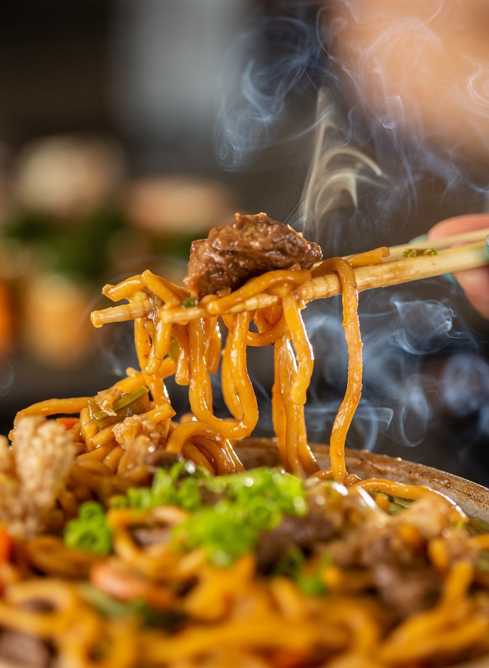 Yaki Soba18€Fried Soba Noddles, Greens, Bonito Flackes, Nori and Prawns